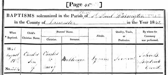 He was baptised at St Pauls, Warrington on 28th August 1842.