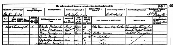 | Charles MUDDIMAN | Head | Mar | 48 | Cotton Power Loom Overlooker | Warrington, Lancashire |