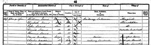 | James Tricky | 34 | Lodger | Miner | Shutford, Devon |