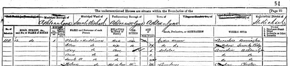 | Charles MUDDIMAN | 8 | Lodger | Warrington, Lancashire |