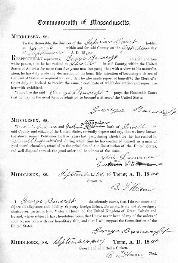 George Bancroft was born on 14th July 1832. At some point, George, his brother John and sister Mary emigrated to the USA. Whether they all arrived together or George arrived first and the John & Mary followed is difficult to know as not records are shown