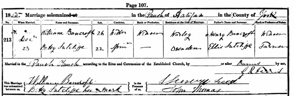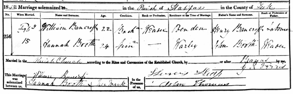 | William BANCROFT | Brother | Unm | 22 | Carpet Weaver | Wadsworth, Yorkshire |