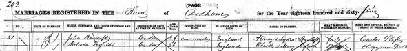 John’s first marriage was to Malinda Crowther on 18th August 1865 in Dedham, Norfolk, Massachusetts.