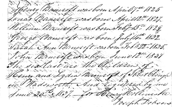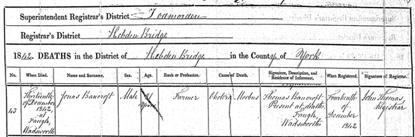 Henry Bancroft was one of eight children born to Jonas and Sally Bancroft (nee Wood) in 1797 in Wadsworth, in the Heptonstall area of Yorkshire.