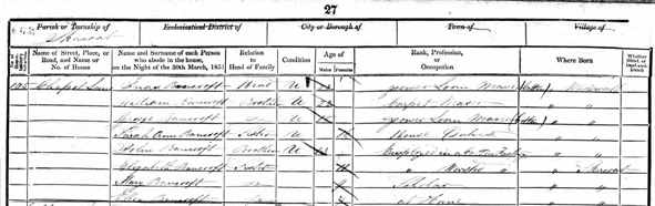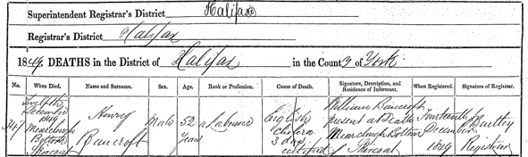| John BANCROFT | Brother | Unm | 13 | Employed in Cotton Factory | Wadsworth, Yorkshire |