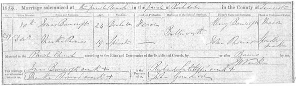 He married Martha Thomas on 30th December 1854 at St Chad in Rochdale. They had two children: