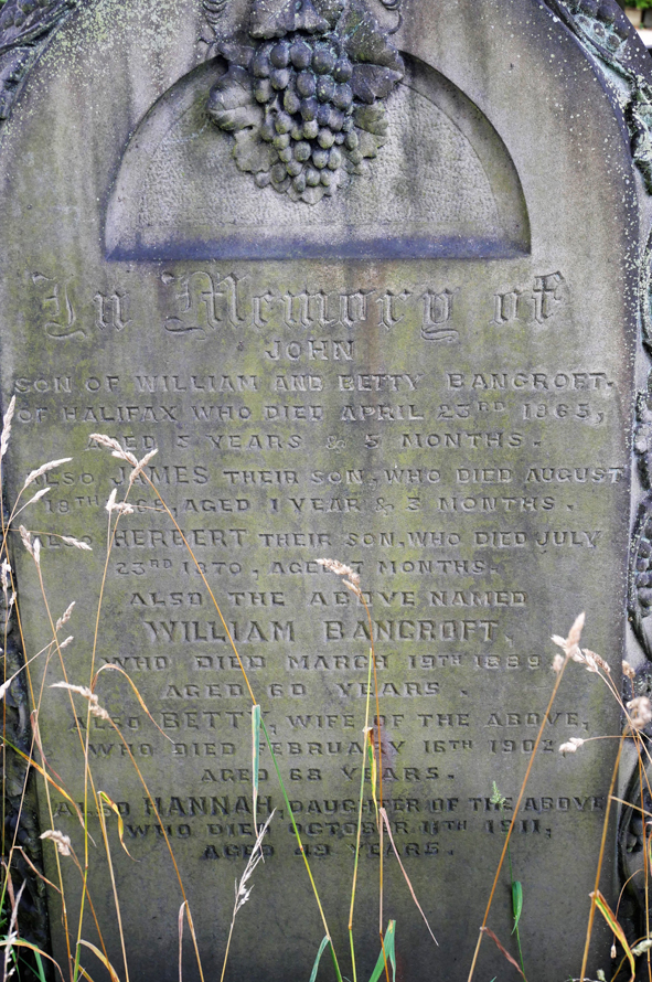 William died on 19th March 1889 and is buried at Christ Church, Mount Pellon, Halifax alongside Betty who died on 16th February 1902 and four of their children.