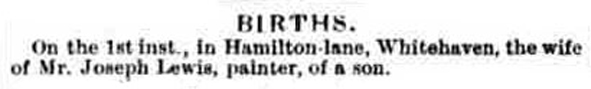 George Henry Lewis was born in Whitehaven on 1st January 1861. His birth was mentioned in the local paper although he hadn’t yet been named.