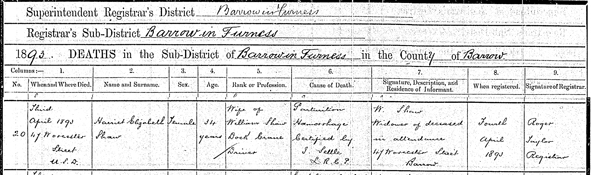 His death was reported in Barrow Herald and Furness Advertiser on 18th March 1876.
