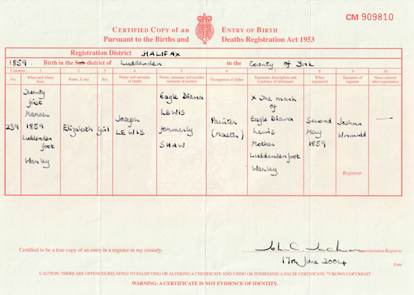Harriet Elizabeth Lewis (or Elizabeth as she preferred to be known) was born on 21st March 1859 at Luddenden Foot, Warley near Halifax.