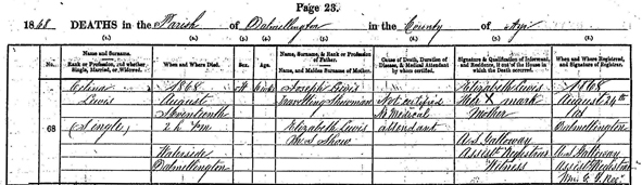 Celena died at Waterside, Dalmellington, Ayrshire on 17th December 1868 aged around 6 weeks old.