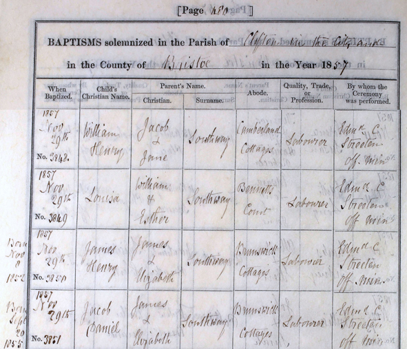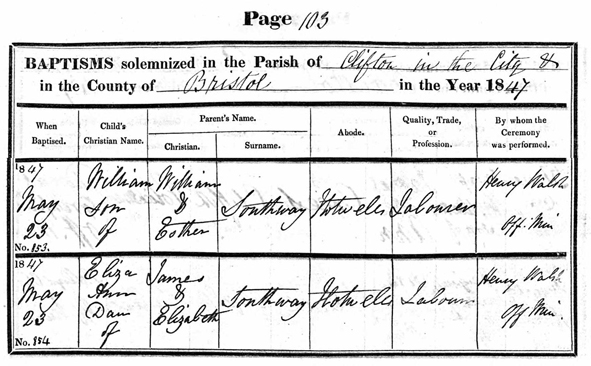 William Southway was born in 1847 and baptised at St Andrew’s in Clifton on the same day as two of his cousins; Eliza Ann (daughter of James & Elizabeth Southway) and William Charles Davis (son of Charles and Ann Davis).
