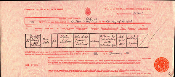 Ann Maria Southway was the oldest daughter of William and Esther Southway. She was born on 25th February 1852 in Clifton.
