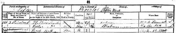 | Charlotte SOUTHWAY | Daur | Unm | 15 | Laundress | Clifton, Bristol |