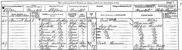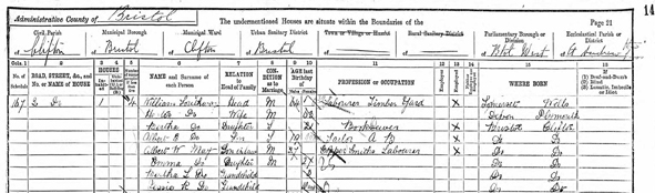 | Albert W MAY | Son-in-law | Mar | 27 | Copper Smiths Labourer | Clifton, Bristol |