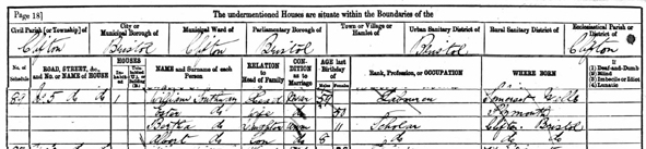 | Albert W MAY | Head | Mar | 36 | Copper Smith Labourer | Bristol |