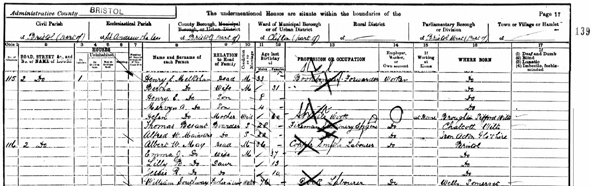 | Bertha L MAY | Grandchild | | 3 | | Clifton, Bristol |