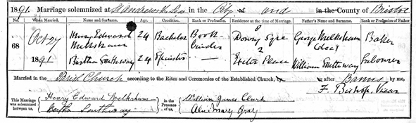 She married Henry Edward Melksham on 27th October 1891 at St Andrew in Clifton, witnessed by William James Clark & Alice Mary Gray. They had two sons: