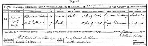 He married Edith Williams on 10th November 1895 at St Augustines and they had two children together: