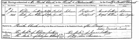 William Southway married Hester (Esther) Jane Williams on 11th June 1848 at The Parish Church in Bedminster.
