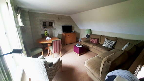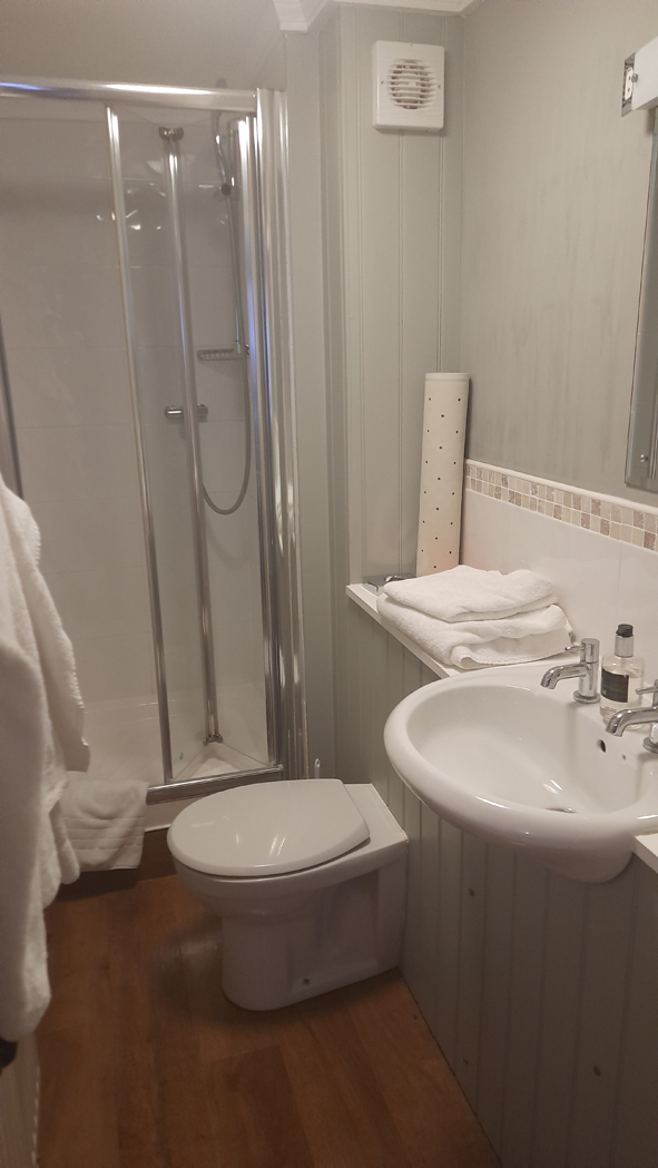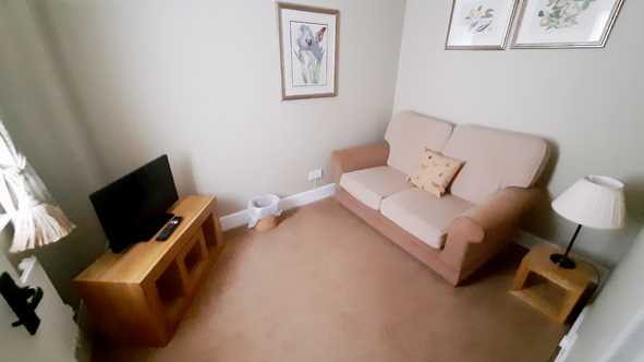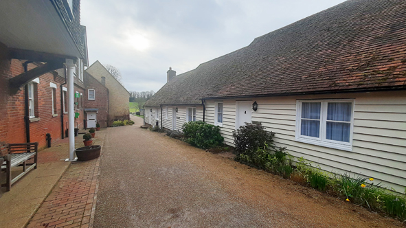 There are about 41 apartments/houses here and we were staying in Cottage 17 called Rhubarb. Our cottage was in the style of a traditional Kentish Cottage – white wooden slats on the outside. We were pleasantly surprised. A double bedroom with narrow en suite, twin bedroom, main bathroom and cosy TV room were on the ground floor. Upstairs was a well appointed kitchen, living area and great views across the walled garden, tennis courts and fields beyond. Probably some of the nicest views in the complex.