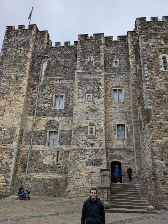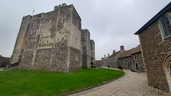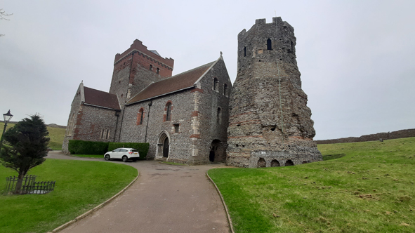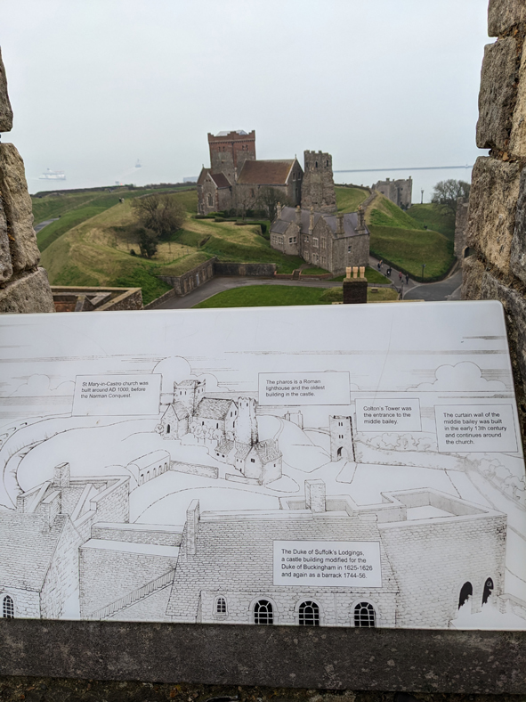 Yet more spiral staircases to move between the levels and up to the top of the tower (great views though). From here, we could see the Saxon Church, St Mary in Castro and also the surviving Roman Lighthouse. The weather was pretty overcast so we were lucky to see beyond the harbour walls; no chance of seeing France today.
