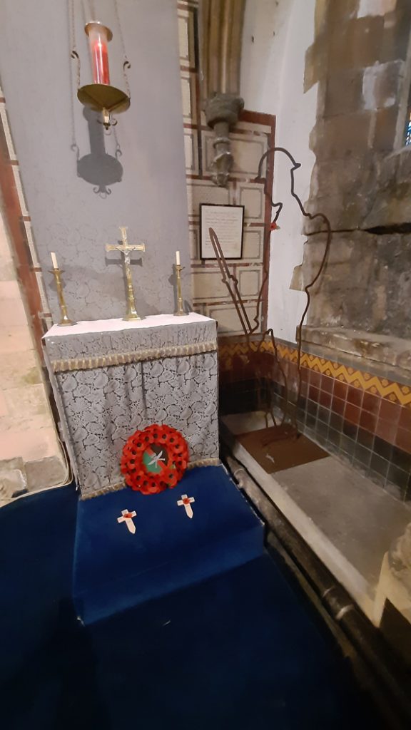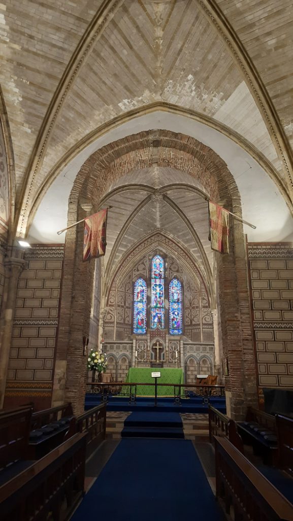 Heading back towards the car we detoured to see the remains of the lighthouse and inside the church. The inside of the church was unusual in the fact the walls were tiled. It is a military church with several of the kneelers representing the regiments that had been connected with the church in the past.