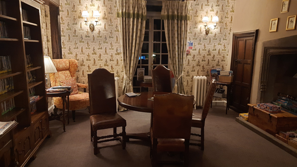 Back to Sibton Hall and we went to explore a little more. Jon and Callum were keen to find the Snooker Room. Into the main house and reception, we headed back through to the library – a good range of DVDs to choose from and some books. Also plenty of info on places to visit as well. Next door to the Library was the Long Room. An impressive room where they host Bondholder suppers and tables around the outside – some with jigsaws on the go.