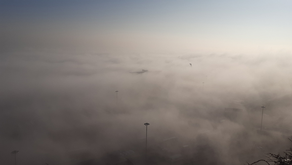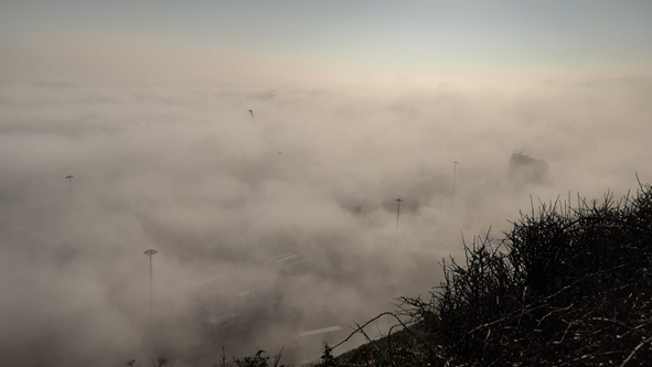 As we arrived, the fog rolled in and you could only see the tops of the cranes in the port below us. Very spooky.