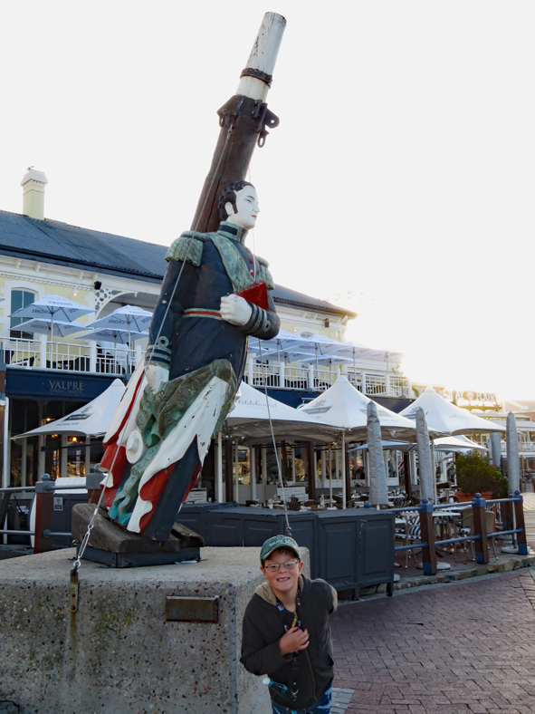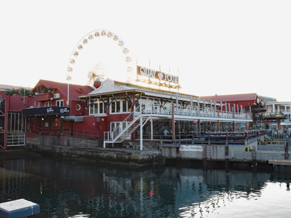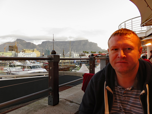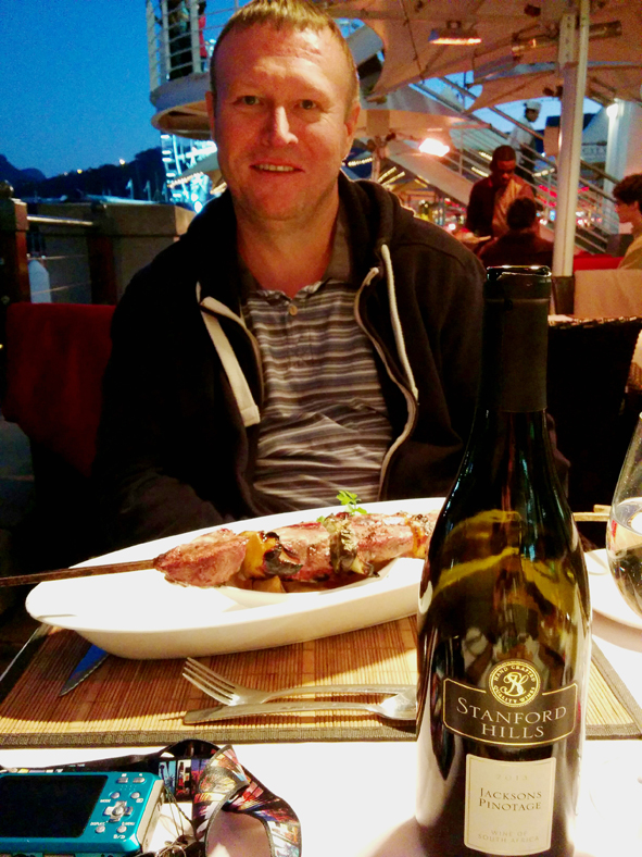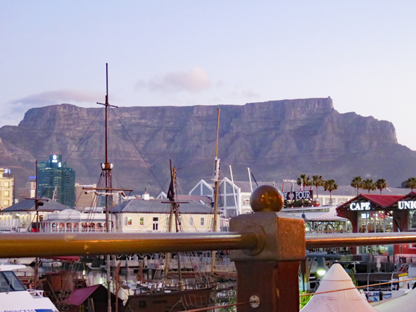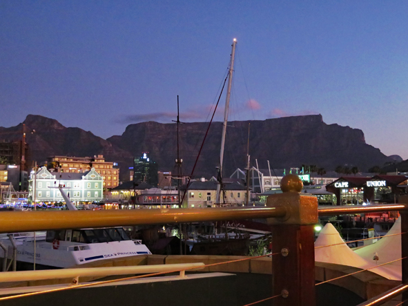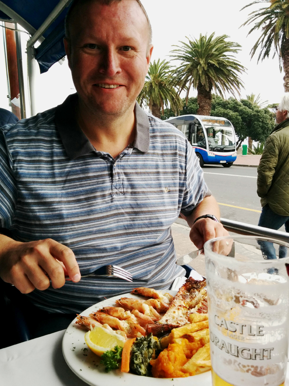 The temperature was starting to drop, but all the restaurants still had outside eating areas with heaters and blankets! Some amazing views of Table Mountain as the sun went down. Starters and Jon and I had the Ostrich and Springbok Carpaccio and Callum the mussels, for mains, Jon opted for the Giant Beef Fillet Skewer, I had the Ostrich fillet and Callum the sirlion of beef. It was all really good and amazing value for money.
