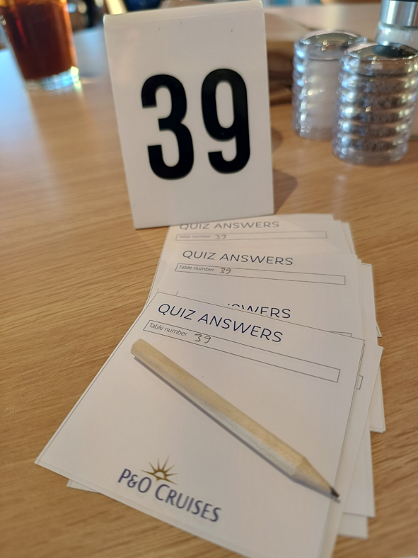 After breakfast, mum headed up to the Crows Nest and the three of us headed to Champions for the Quiz. A Themed Quiz on World famous brands.