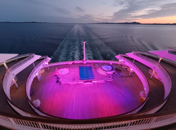 Our second sea day and once again when the curtains were pulled back, we saw it was another lovely sunny day with seas as flat as a pancake.