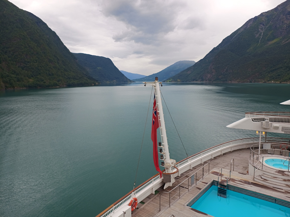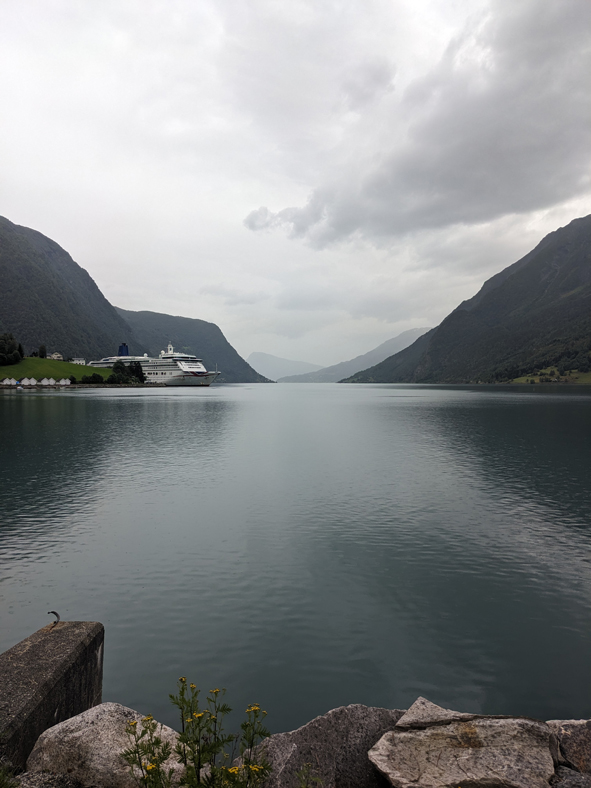We awoke this morning as we were pulling into Skjolden. It takes about 8 hours to sail along the fjord to reach Skjolden at the very end of the fjord. It’s a few branches further long the Flam.