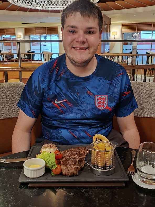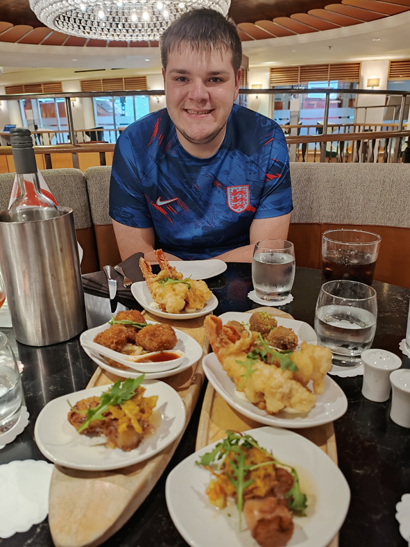 Lunch we went to Costa for a hot chocolate / latte and a prawn roll. Callum was still hungry so we then went up to the buffet before retiring to the cabin for a siesta.
