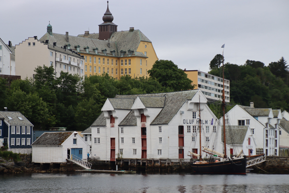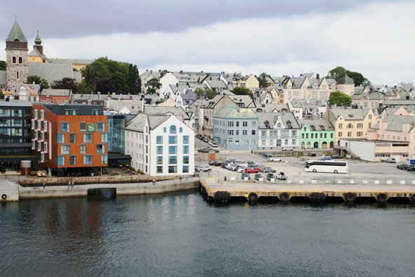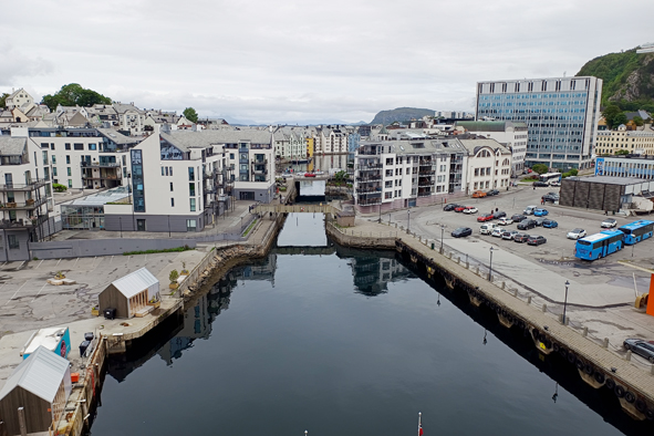 Alesund this morning and when the curtains were pulled back, we had a great view of the town looking straight down one of canals.