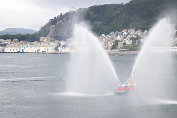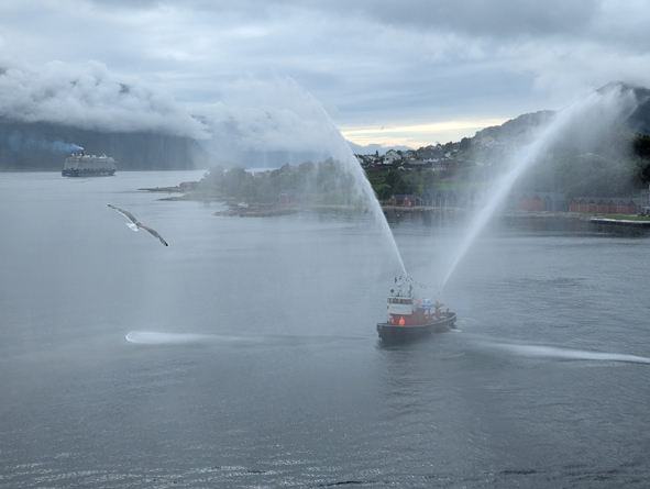 We wandered around the town before heading back to the ship to spend a leisurely afternoon onboard. We were out on our balcony for sail away and the fireboats were putting on a fabulous display as Mein Schiff 4 and Aurora left port.