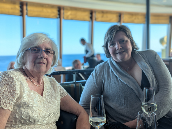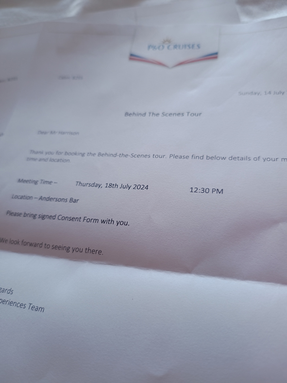 Peninsular Club Party tonight – we headed off to the Crows Nest for 7.30pm and listened to the Loyalty team and Captain’s speeches. We only managed to get 1 glass of bubbles each – the waiters were not very quick at keeping people topped up. The only passengers being topped up were those sat in the upper area, closest to the bar. Most loyal travellers were an elderly couple who had clocked up over 1,000 nights on board P&O, with more than half their cruises on Aurora. They were presented with a signed ships model (wonder how many they’ve got!) Need to find out how many nights Mum has clocked up … and get her a few more cruises booked up!