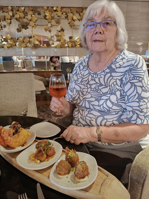 Jon and Callum had booked themselves onto the Aurora Behind the Scenes Tour today. They headed off at 12.30pm, so mum and I headed off to the Glass House for a bite to eat. Three tasting plates each and a glass of the Sunset Blush we’ve enjoyed.